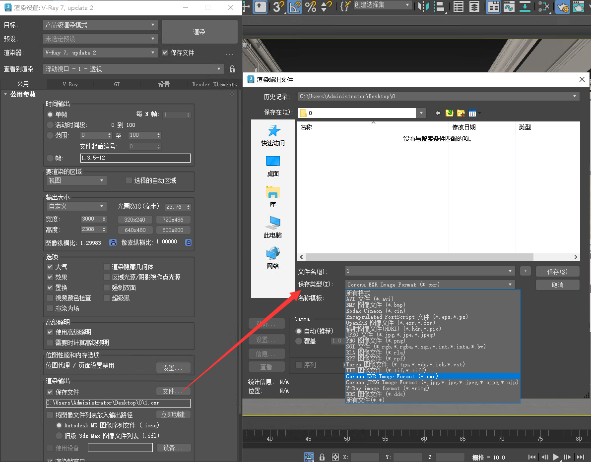 场景启用了VRay渲染器,但是输出文件格式是CXR,会导致出图错误