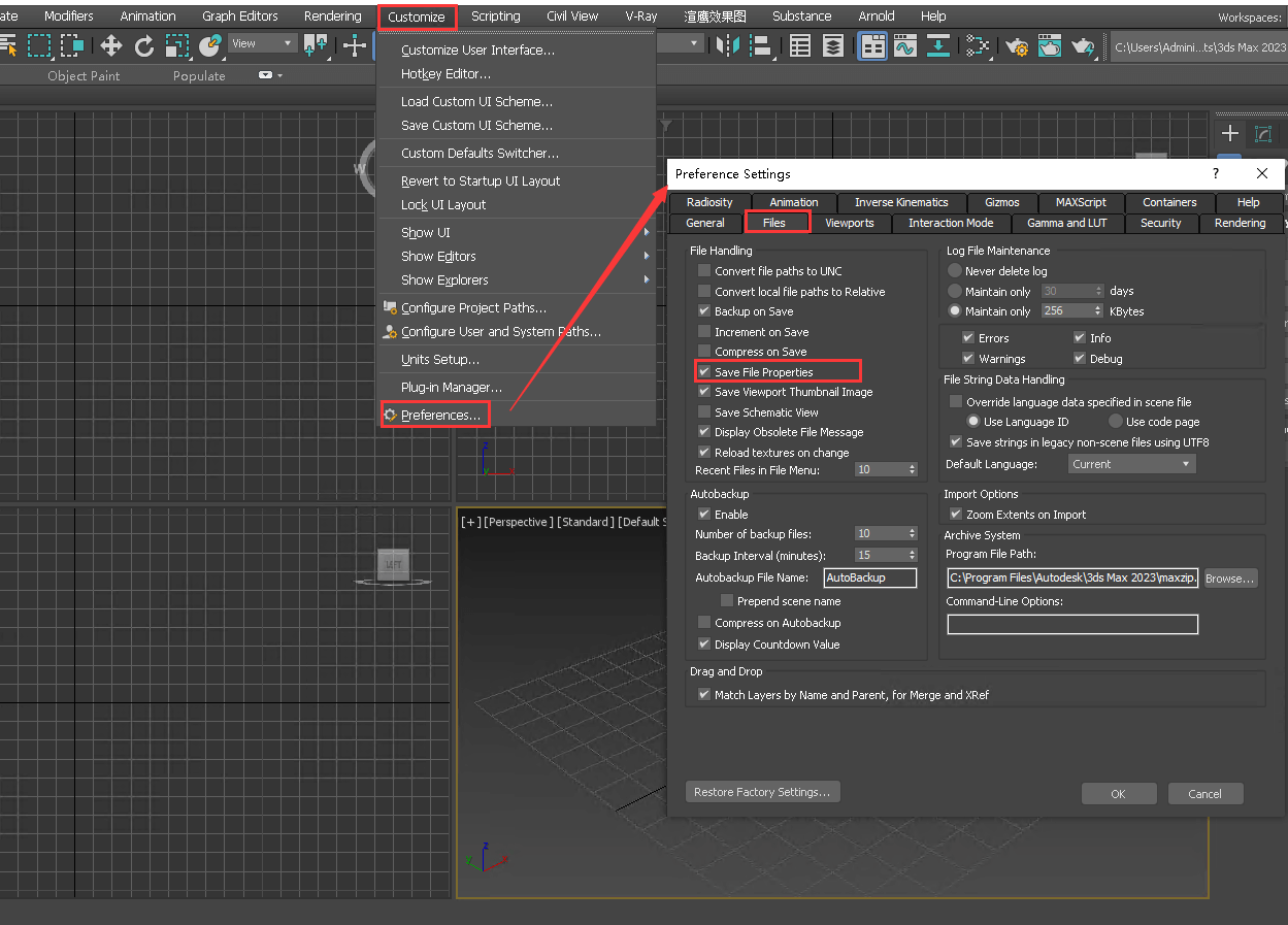 Customize(自定义) _ Preference Settings (首选项) _ Files (文件)_ Save File Properties(保存文件属性)
