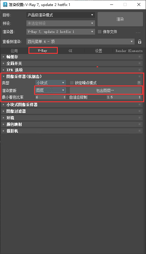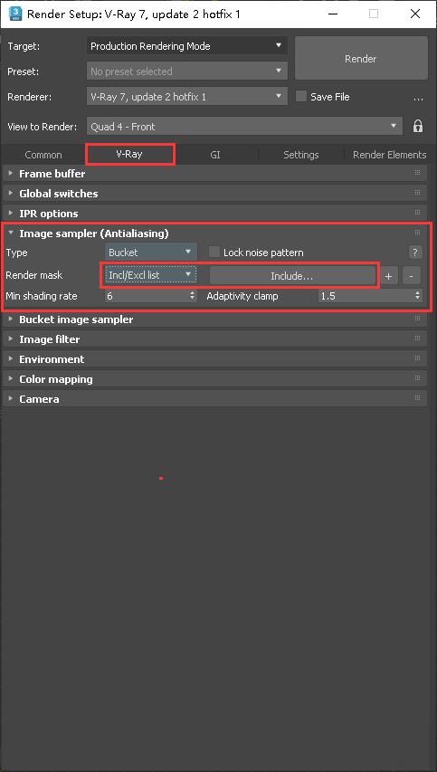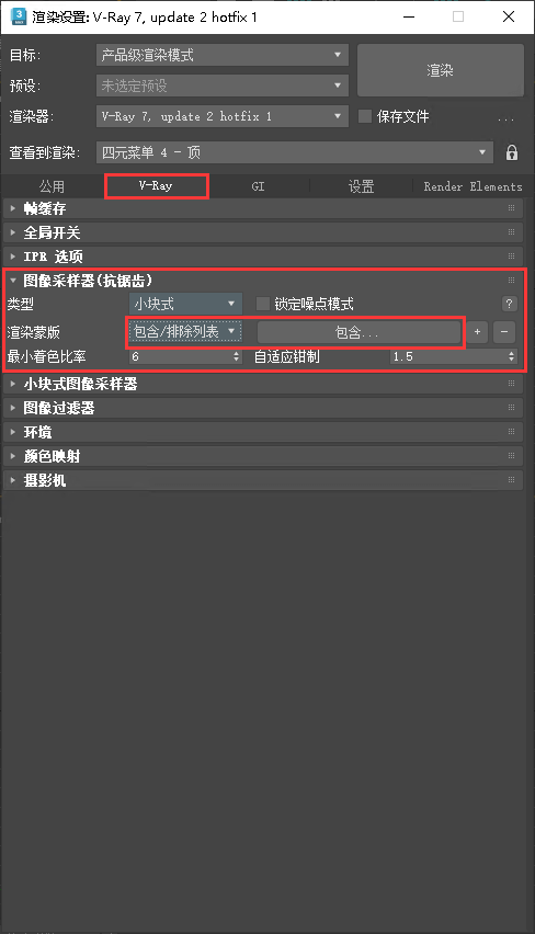 渲染设置(F10)_ V-Ray _ Image Sampler(图像采样器) _ Render mask(渲染蒙版) _ Include/Exclude list(包含/排除列表)