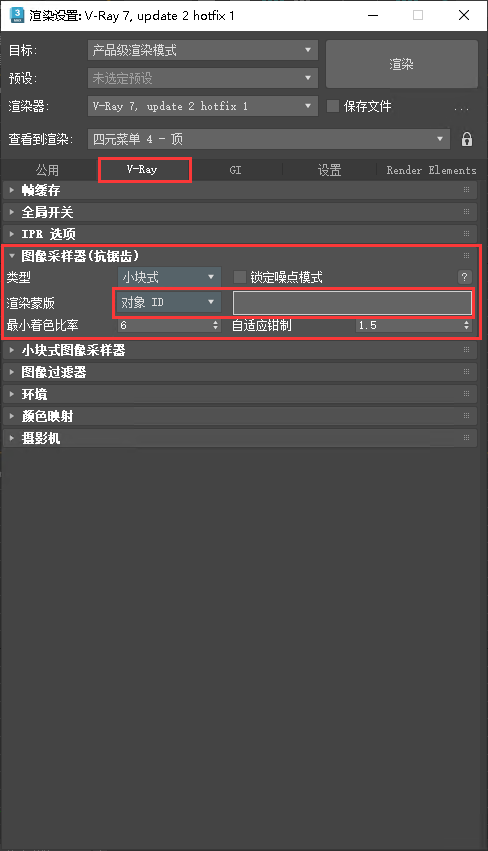 渲染设置(F10)_ V-Ray _ Image Sampler(图像采样器) _ Render mask(渲染蒙版) _ Object IDs(对象ID)
