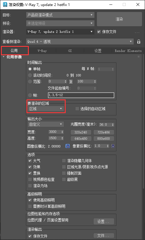 V-Ray->VFB->区域渲染,960模式不支持区域渲染,请修改后提交