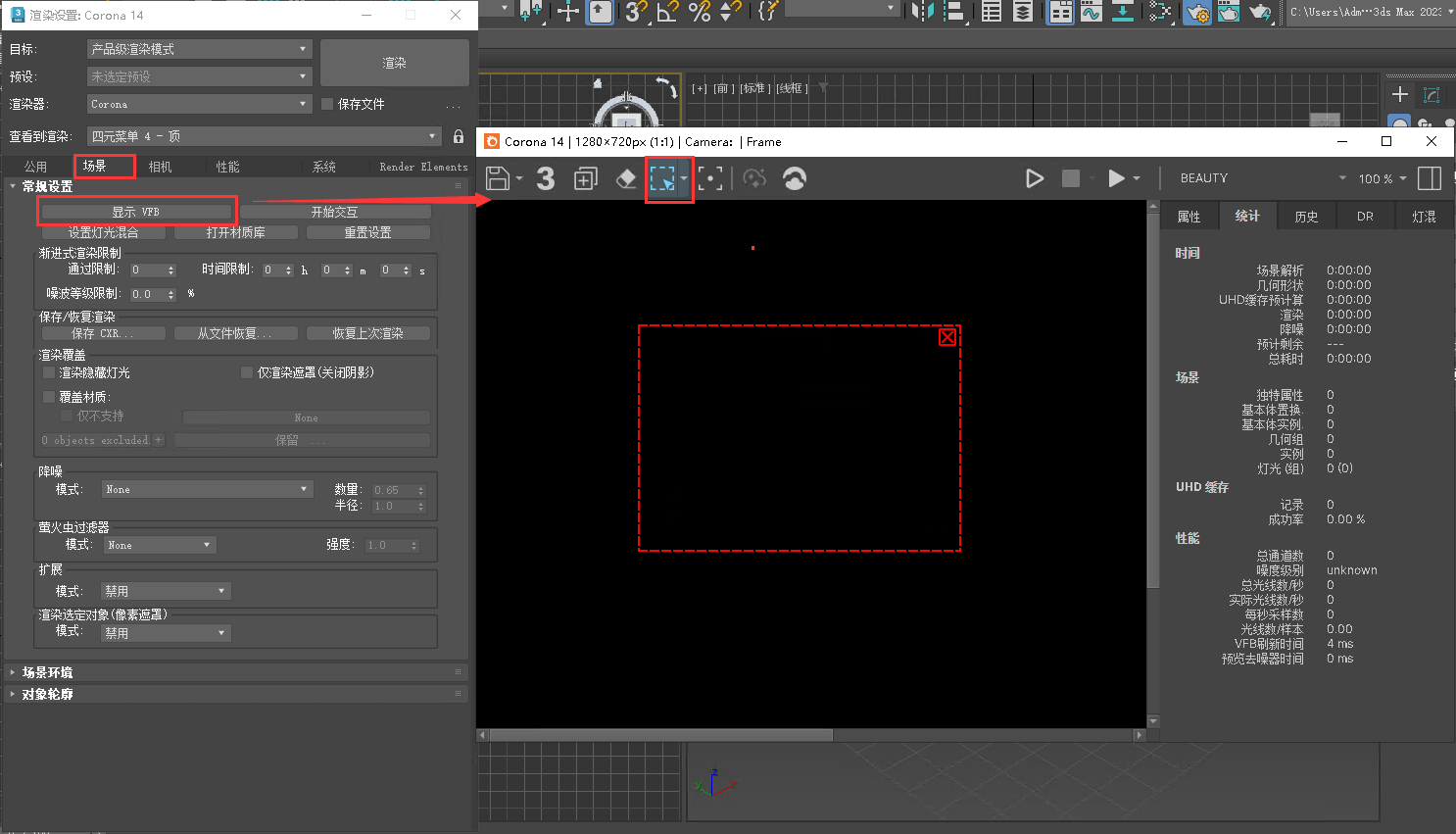 渲染设置(F10)_ scene (场景)_ General Settings (常规设置)_ show VFB(显示 VFB)