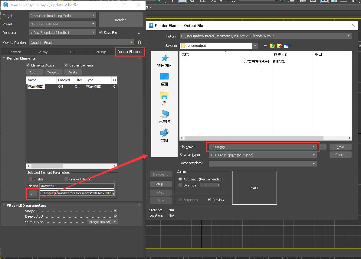 渲染设置(F10)_ Render Elements (渲染元素)_ Render Output File(渲染输出文件) _ File name (文件名)
