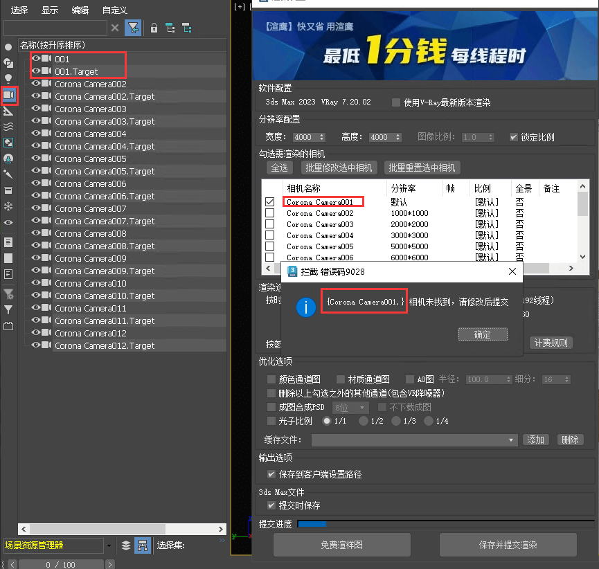 corona渲染器,场景-->常规设置-->渲染选定对象-->模式,使用的 《视口选择》,在联机模式下会渲染失败,请修改后提交