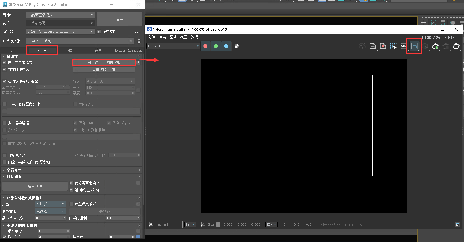 渲染设置(F10)_ V-Ray _ 帧缓存 _ 显示最近一次的 VFB