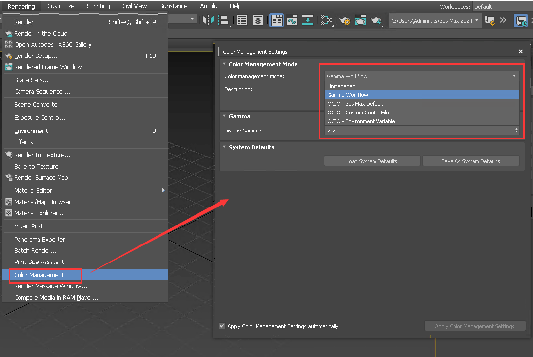 非经济模式和省鹰渲模式,OCIO暂时只支持Gamma工作流或者非托管,其余选项不支持,请修改后提交