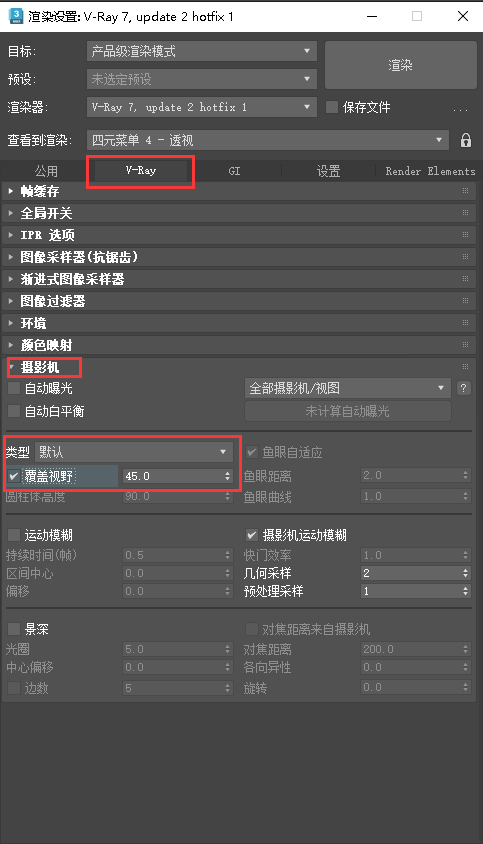 {{yyy}}摄像机,V-Ray-->相机-->类型默认并设置了覆盖视野360,(目标、自由)摄像机渲染会导致出图纯色,请修改设置后提交