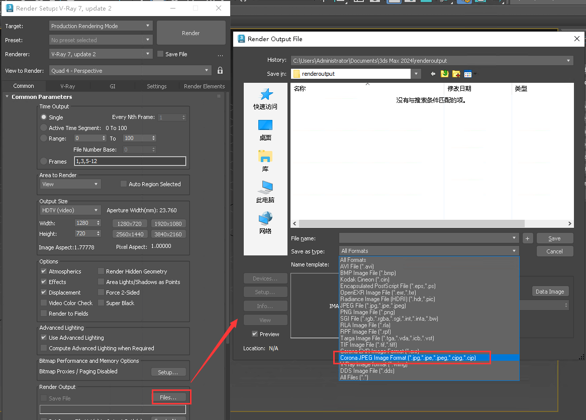 渲染设置(F10)_ Common(公用)_ 渲染输出 (Render Output)_ Render Output File(渲染输出文件) _ Save as type(保存类型)